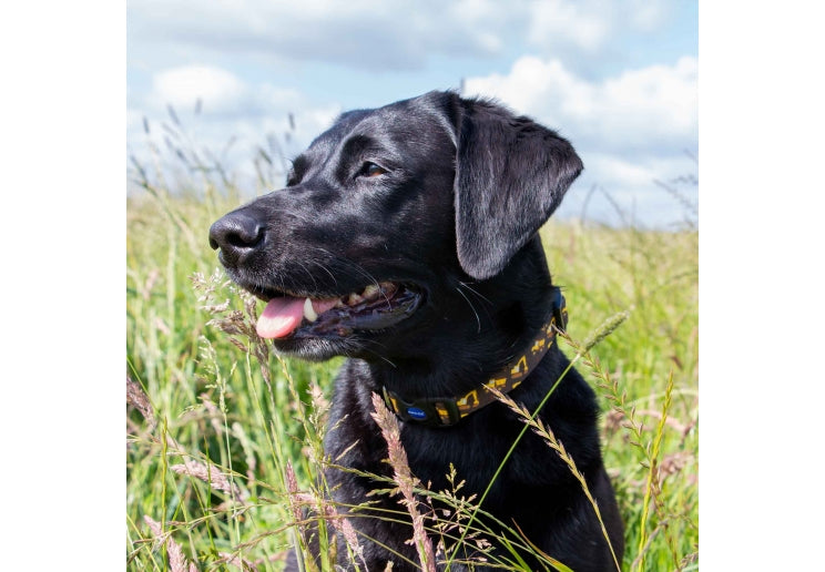 Crafted in-house in the UK using recycled webbing, this collar combines eco-conscious production with durable, all-weather performance. Built on a hardwearing webbing base, it's perfect for everyday wear and swimming. Features a secure snap-buckle fastening and is fully adjustable for comfort. - Made in the UK from recycled materials - Available in 3 sizes: Small (20-30cm), Medium (30-50cm), Large (45-70cm)
