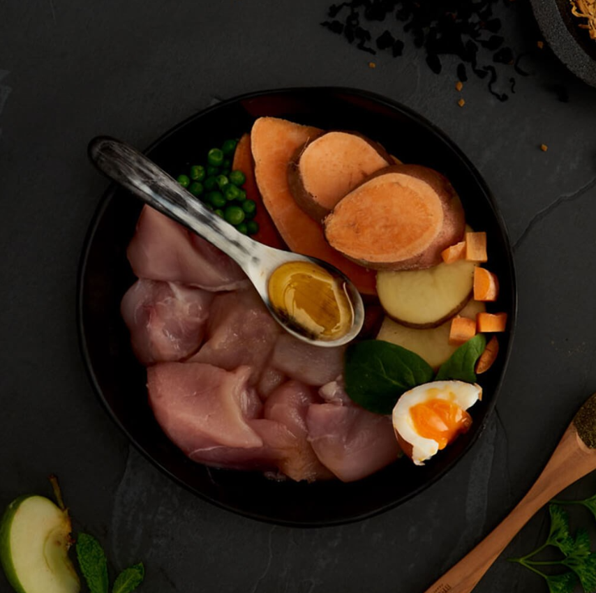 Freshly Prepared Turkey (33%), Dried Chicken (18.7%), Sweet Potato, Potato, Peas, Chicken Fat (4%), Alfalfa, Dried Egg (3.1%), Pea Protein, Chicken Gravy (1.6%), Salmon Oil (1.2%), Minerals, ProDen PlaqueOff® (2,500 mg/kg), Glucosamine (850 mg/kg), MSM (850 mg/kg), Apple, Carrot, Fructooligosaccharides, Spinach, Psyllium, Chondroitin Sulphate (620mg/kg), Peppermint, Camomile, Marigold, Cranberry, Parsley, Aniseed & Fenugreek.
