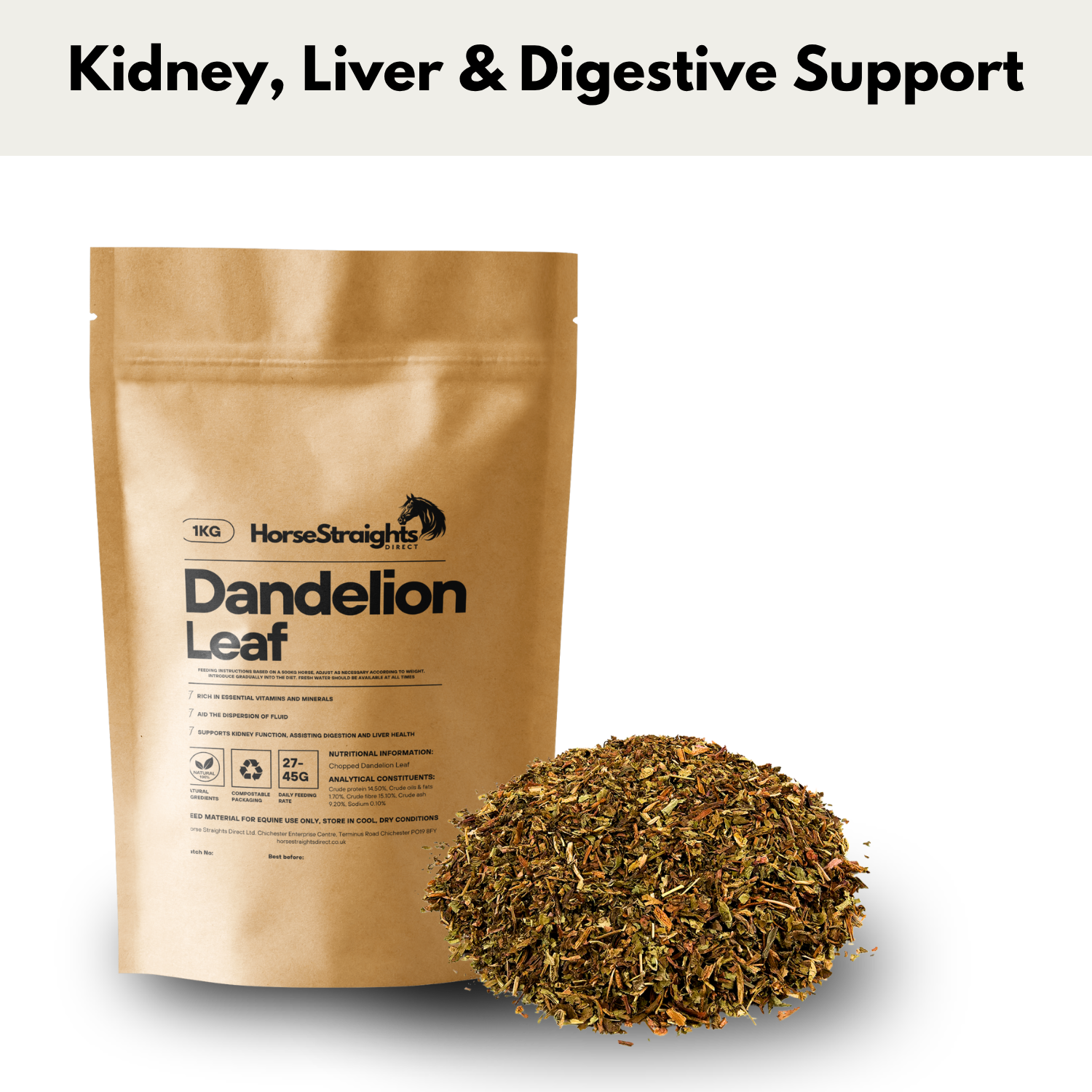 Dandelion leaves aid healthy kidney function and detoxification, flushing out harmful substances from the horse's system. Dandelion leaves can aid digestion and support liver health.