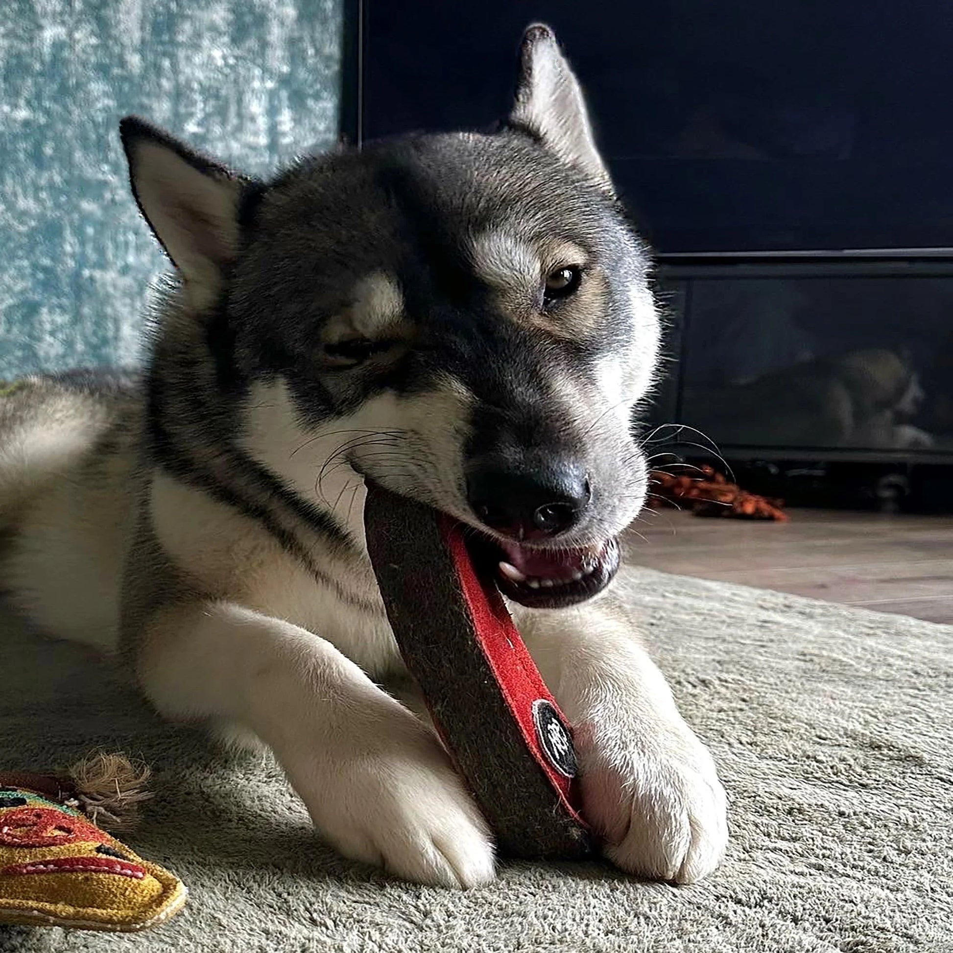 Jute is a natural, sustainable plant fibre. The suede is a by-product and ensures that this material is not wasted. Tough and long lasting, made without using any compound that would harm or be released when chewed. Jute is 100% biodegradable.