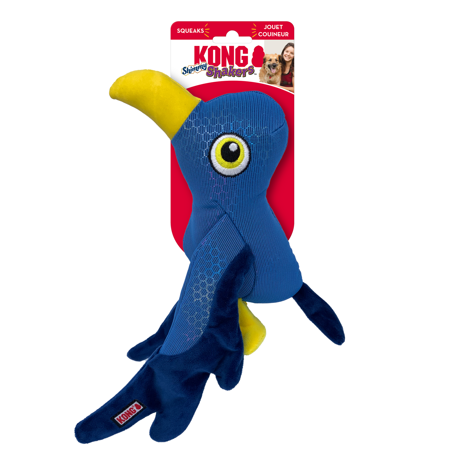 KONG Shakers Shimmy Seagull’s giant floppy wings invite instinct-satisfying bouts of thrashing. Faux leather, shimmery and plush textures keep pups interested while a low-tone squeaker and crackle spark shaking shenanigans—a shore bet for tons of healthy exercise.
