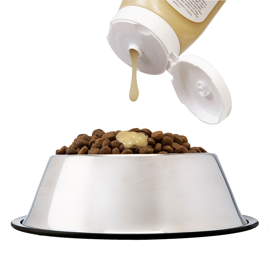 This Active Joints Supplement Sauce is a high strength, veterinary formulation with added glucosamine, chondroitin and collagen, MSM and hyaluronic acid, designed specifically to maintain the long-term health of your dog's joints. The chicken flavour sauce recipe is hypoallergenic and made with quality natural ingredients, added vitamins and minerals. The squeezy bottle makes it easy to administer and each bottle lasts a medium sized dog 30 days.